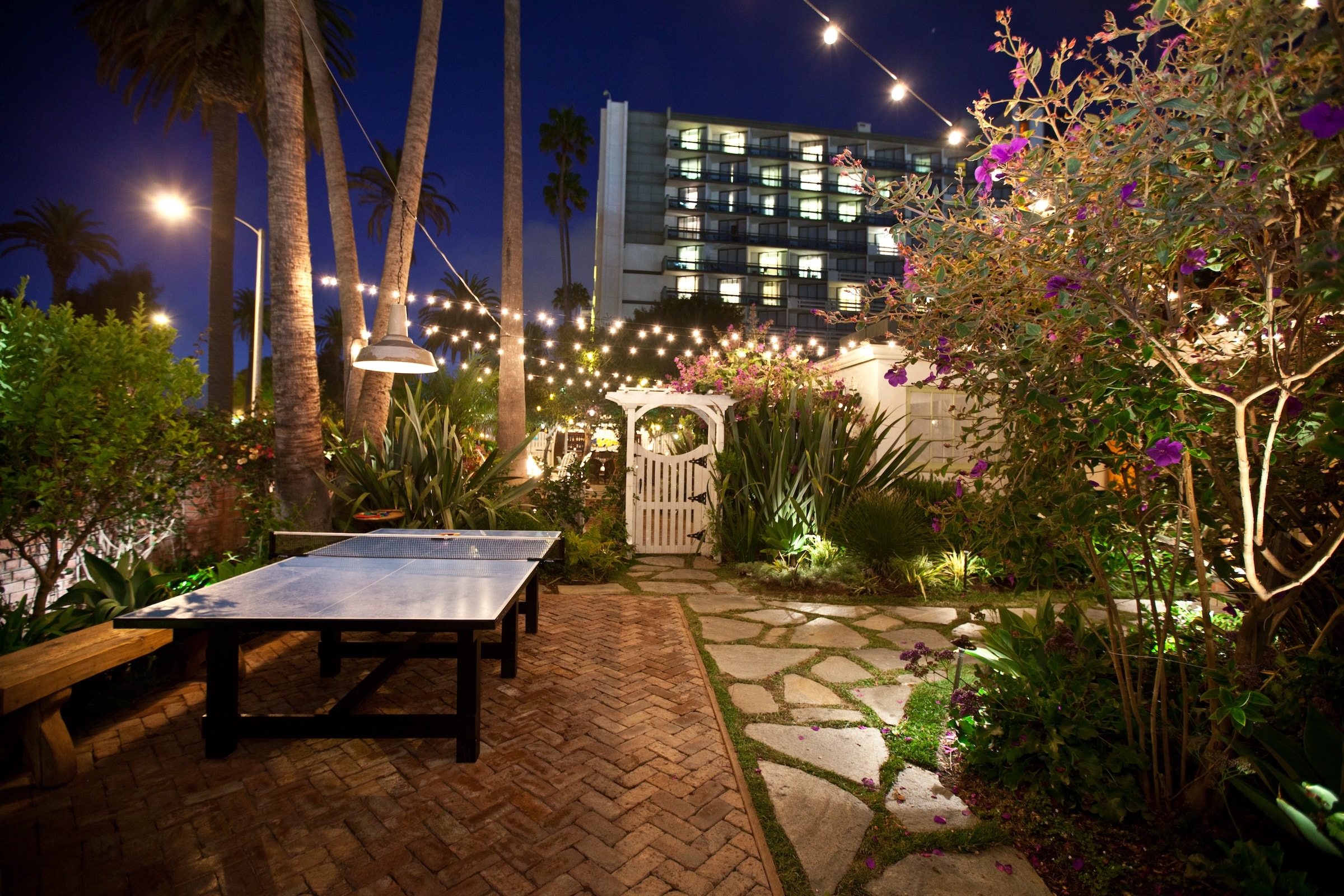 From hospitality visionary Brent Bolthouse comes The Bungalow; is a paradigm in romantic socializing and creative meeting space for the Westside of Los Angeles The Bungalow is a space that evokes a breezy, beachside Baja lifestyle. The place feels more like a home than a bar, with mismatched tables, chairs and couches. In addition to the front deck with its fire pits, lush foliage and twinkling tree lanterns, the Bungalow also has a laid-back game room with a pool table, a private dining room, a back garden and a large main bar with high raftered ceilings. Moroccan tile work, Mexican blankets, multiple fireplaces, whitewashed walls, French doors and custom brickwork complete the scene.